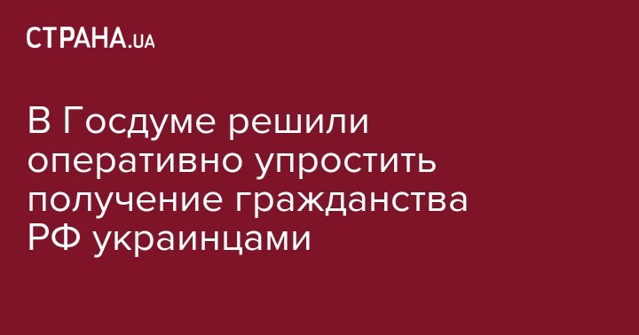 В Госдуме решили оперативно упростить получение гражданства РФ украинцами