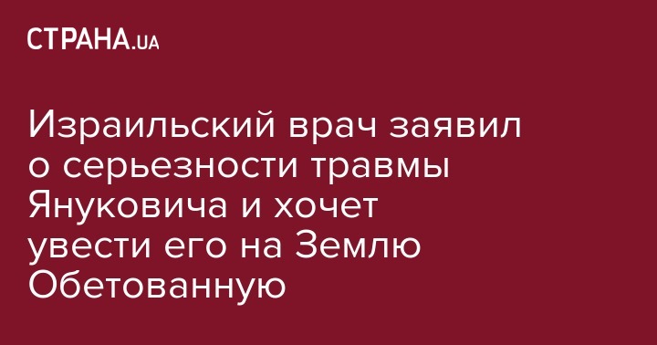 Известный хирург из Израиля Эяль Аттиас подтвердил серьезность травмы у Виктора Януковича, которого обвиняют в госизмене и настаивает на лечении экс-президента в Израиле. Об этом сообщил адвокат Януковича Александр Горошинский в Facebook.