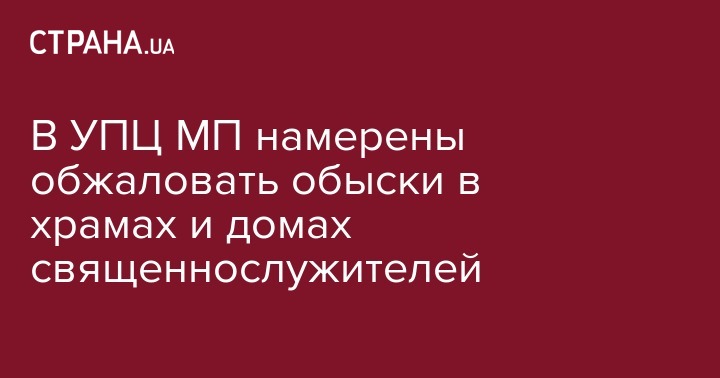 В Украинской православной церкви (Московского патриархата) заявляют о намерениях обжаловать проводимые Службой безопасности Украины (СБУ) обыски в храмах и по месту жительства священников. Об этом говорится на официальном сайте УПЦ (МП).