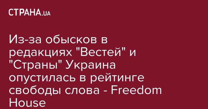 Из-за обысков в редакциях "Вестей" и "Страны" Украина опустилась в рейтинге свободы слова - Freedom House