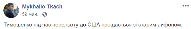 "Тимошенко во время перелета в США прощается со старым айфоном", - шутит журналист Михаил Ткач, намекая, что в Америке айфон можно купить дешевле, чем в Украине.