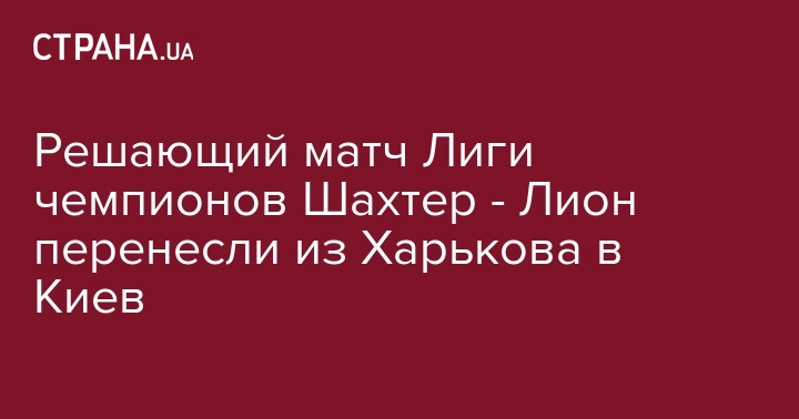 Решающий матч Лиги чемпионов Шахтер - Лион перенесли из Харькова в Киев