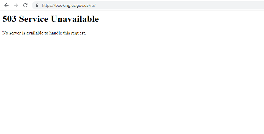 Вечером во вторник, 4 декабря, случился сбой сервиса "Укрзализныци" для покупки билетов онлайн.Сайт, расположенный по адресу booking.uz.gov.ua не открывается и выдает ошибку №503.