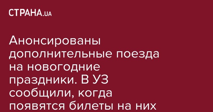 В "Укрзализныце" пообещали, что продажа билетов на дополнительные поезда, назначенные на время новогодних праздников, начнется после того как украинцы раскупят места в составах, которые курсируют круглый год. Об этом сообщает пресс-служба компании.