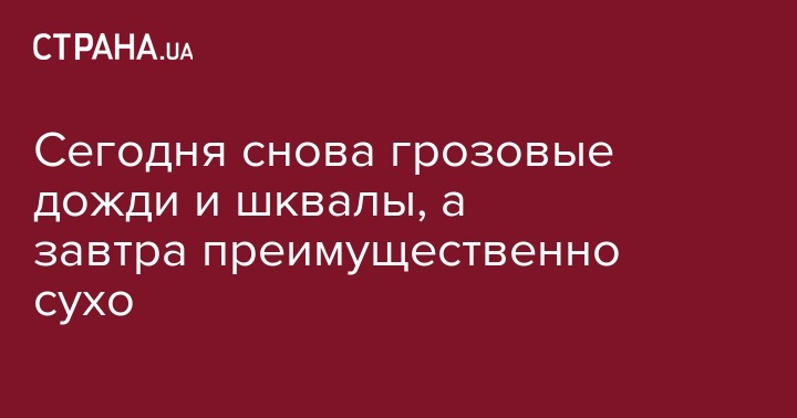 Сегодня снова грозовые дожди и шквалы, а завтра преимущественно сухо