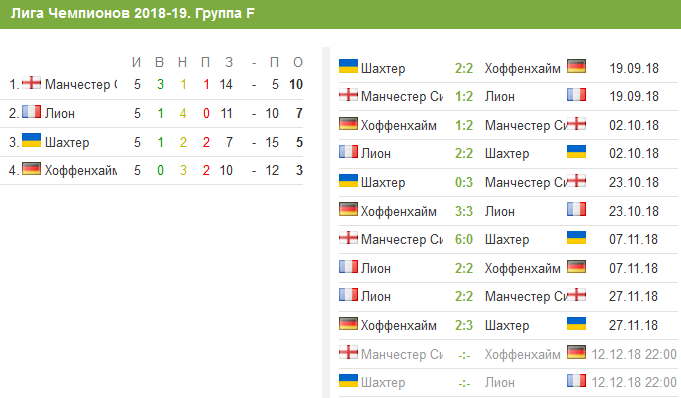 Положение в группе "F" Лиги чемпионов перед последним туром
