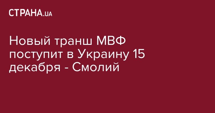 Первый транш Международного валютного фонда в рамках новой программы сотрудничества поступит на счета государства за 10 дней до Рождества, то есть 15 декабря. Об этом заявил глава Национального банка Украины Яков Смолий в интервью Reuters.