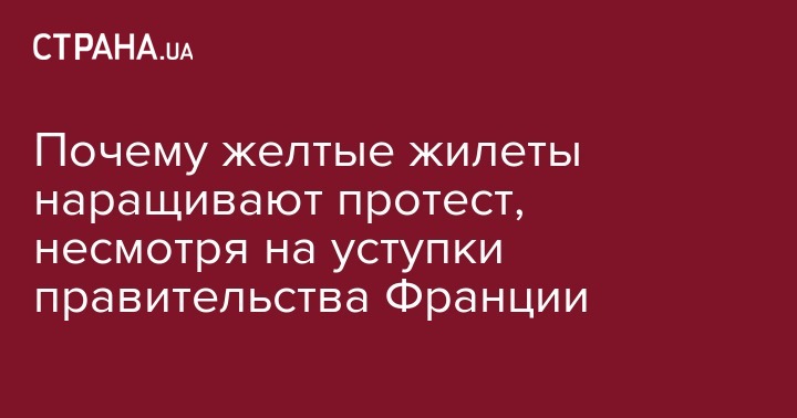 Как сообщала "Страна", во Франции желтые жилеты анонсировали новые забастовки, они считают уступки властей Недостаточными.
