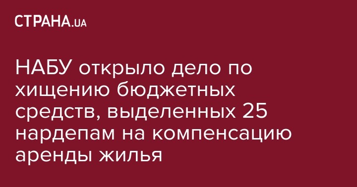 Национальное антикоррупционное бюро Украины (НАБУ) открыло уголовное производство по факту присвоения бюджетных средств при выплате 25 депутатам Верховной Рады компенсаций за аренду жилья в Киеве. Об этом Украинским Новостям сообщил источник в НАБУ.