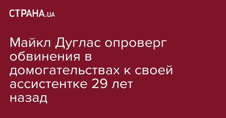 Американский киноактер Майкл Дуглас опроверг обвинения в сексуальных домогательствах к своей ассистентке Сьюзан Броуди, которые якобы имели место в 1989 году. Об этом сообщает британская Daily Mail.