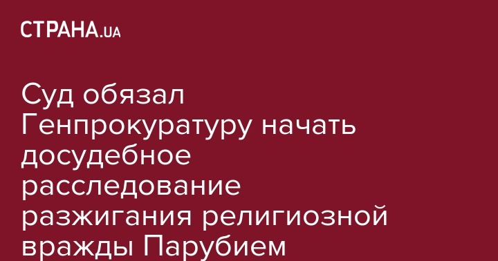 5 декабря Печерский районный суд Киева вынес решение, согласно которому Генеральная прокуратура Украины обязана внести в ЕРДР сведения о совершении спикером Верховной Рады Андреем Парубием уголовного правонарушения и начать досудебное расследование. Об этом пишет Информационно-просветительский отдел УПЦ