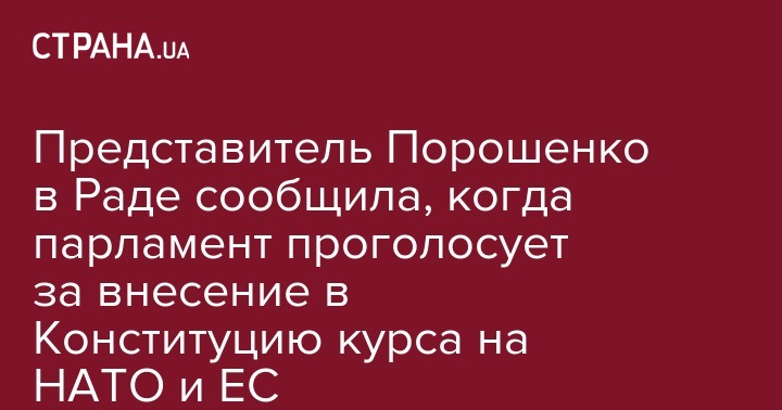 Представитель Порошенко в Раде сообщила, когда парламент проголосует за внесение в Конституцию курса на НАТО и ЕС