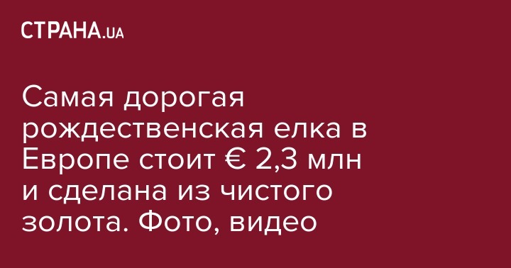 Елка стоимостью в 2,3 миллиона евро (2,6 миллиона долларов) украшает офис немецкой фирмы по торговле золотом Pro Aurum. Такой дорогой она получилась потому, что она полностью сделана из золотых монет.