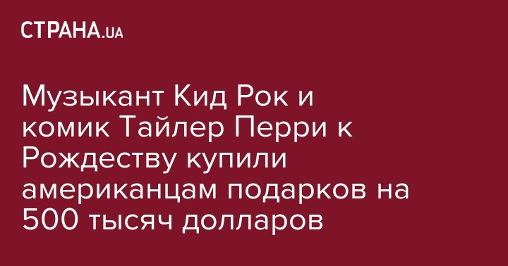 Американский музыкант Кид Рок и комик Тайлер Перри устроили к Рождеству благотворительную акцию. Они выделили более 500 тысяч долларов на то, чтобы оплатить счета других людей в магазинах. Об этом передает "Голос Америки".