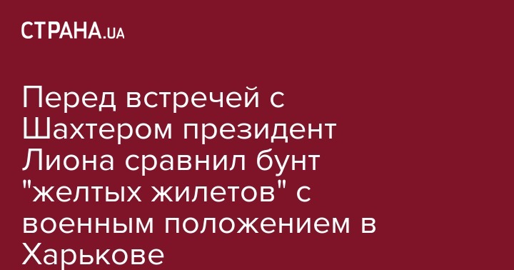 Президент французского футбольного клуба "Лион" Жан-Мишель Олас сравнил перенос матча с "Тулузой"  из-за протестов "Желтых жилетов" с переносом матчаЛиги чемпионов с донецким "Шахтером" из-за военного положения в Харькове. Об этом сообщает Еurosport.
