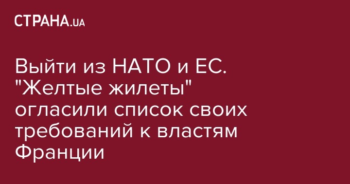 "Желтые жилеты" во Франции, после массовых акций протеста в Париже, наконец-то сформулировали список конкретных требований к властям и предали его огласке. Манифест протестующих к правительству опубликовал сайт Le Libre Penseur.