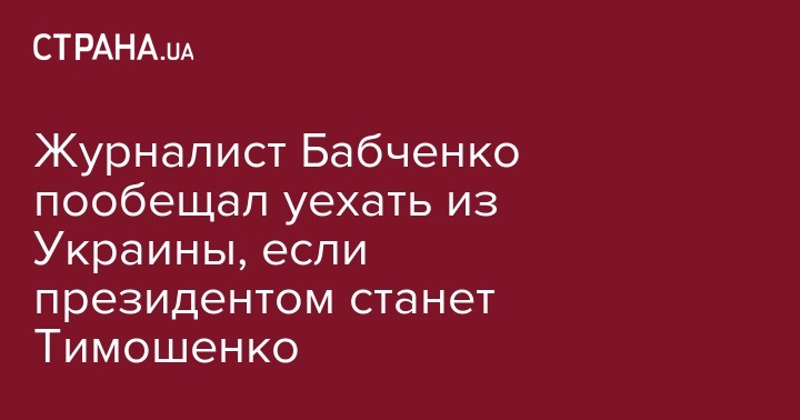 Журналист Бабченко пообещал уехать из Украины, если президентом станет Тимошенко
