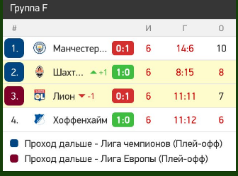 Перед решающим матчем Шахтер занимает третью строчку в группе F Лиги чемпионов УЕФА. На первом месте с 10 очками - Манчестер Сити, на втором Лион, его отделяет от дончан два очка. Хоффенхайм на четвертой позиции с 4 очками.