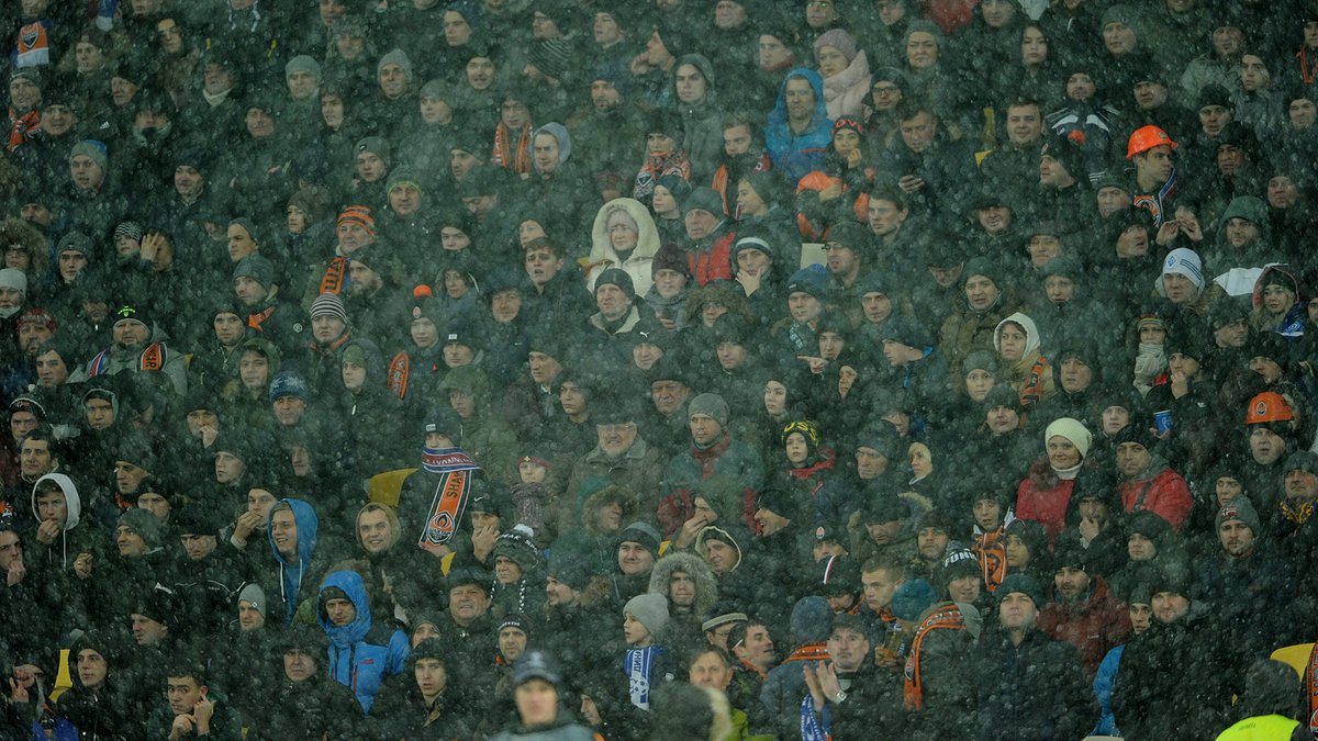 21:12 На стадионе валит снег. Будет скользко и должно быть весело.