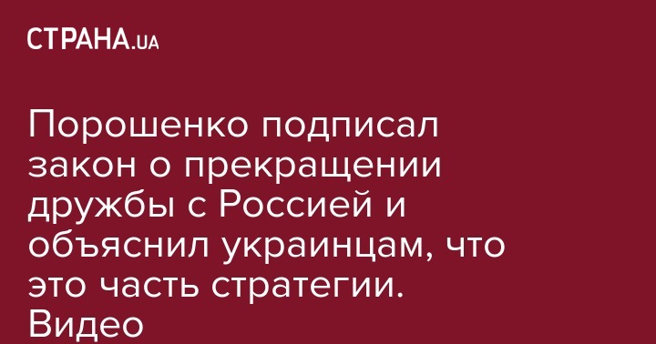 Порошенко подписал закон о прекращении дружбы с Россией и объяснил украинцам, что это часть стратегии. Видео
