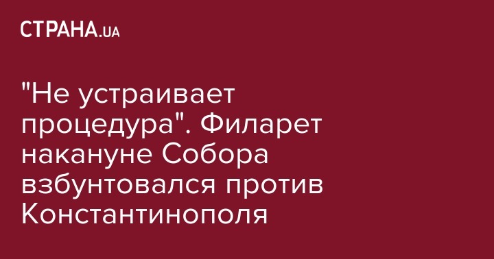 Накануне открытия Объединительного собора Филарет (Денисенко) заявил, что может не принять правил, установленных Вселенским патриархом. В УПЦ КП не согласны с процедурой проведения Объединительного собора, которую установил Вселенский патриарх Варфоломей. Об этом сообщает ТСН.