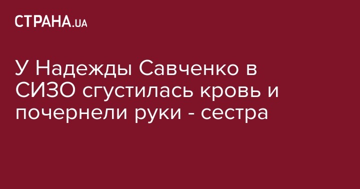 У Надежды Савченко в СИЗО сгустилась кровь и почернели руки - сестра