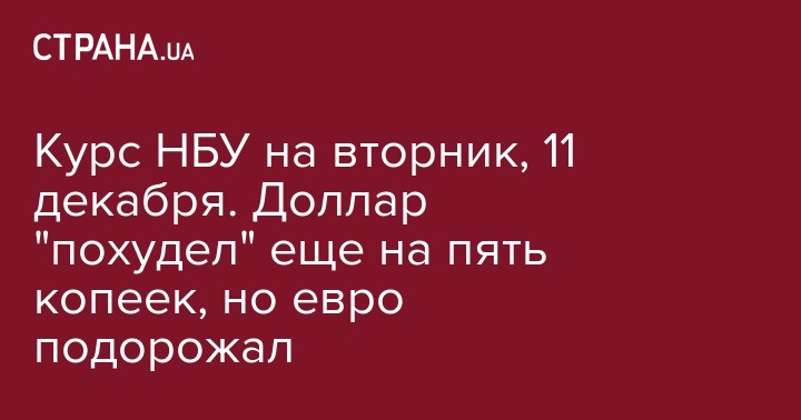 Во вторник, 11 декабря, официальный курс гривны укрепился еще на 5 копеек и установлен на уровне 27,77 грн/долл вместо вчерашних показателей в 27,82 грн/долл. Об этом сообщает сайт Национального банка Украины.