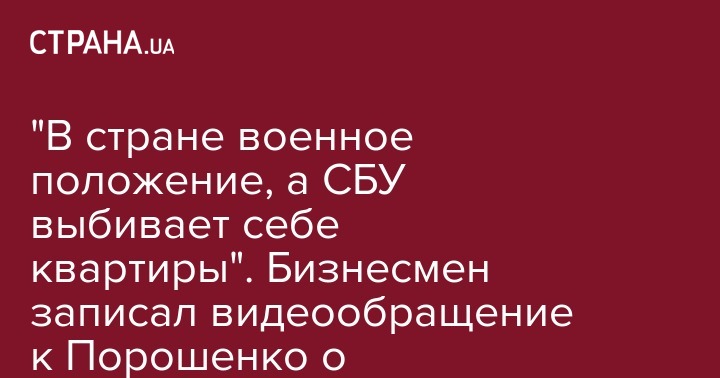 "Неужели, когда в стране военное положение, СБУ нечем заняться, кроме как шантажировать частный бизнес и пытаться выбить квартиры по решению вопросов ... Одновременно появляются разные люди от СБУ и за большие деньги с угрозами закрыть строительство предлагают решить этот вопрос. Цена один миллион долларов или квартиры в нашем доме", - заявил бизнесмен.
