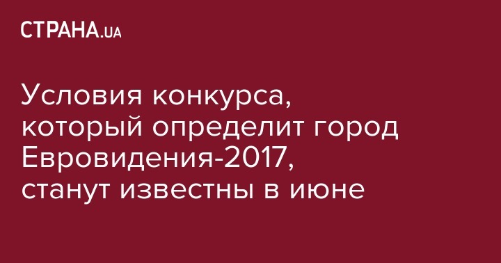Для городов, которые пожелают провести Евровидение-2017, будет объявлен конкурс. Об этом сообщает информационное агентство УНН
