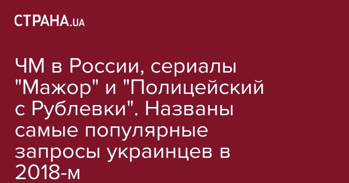ЧМ в России, сериалы "Мажор" и "Полицейский с Рублевки". Названы самые популярные запросы украинцев в 2018-м