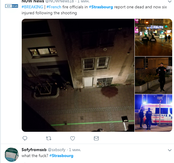 Сотрудники французской полиции прибыли в центр Страсбурга после получения информации о стрельбе. Об этом сообщают местные издания вечером во вторник, 11 декабря.