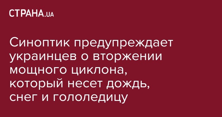 Синоптик предупреждает украинцев о вторжении мощного циклона, который несет дождь, снег и гололедицу