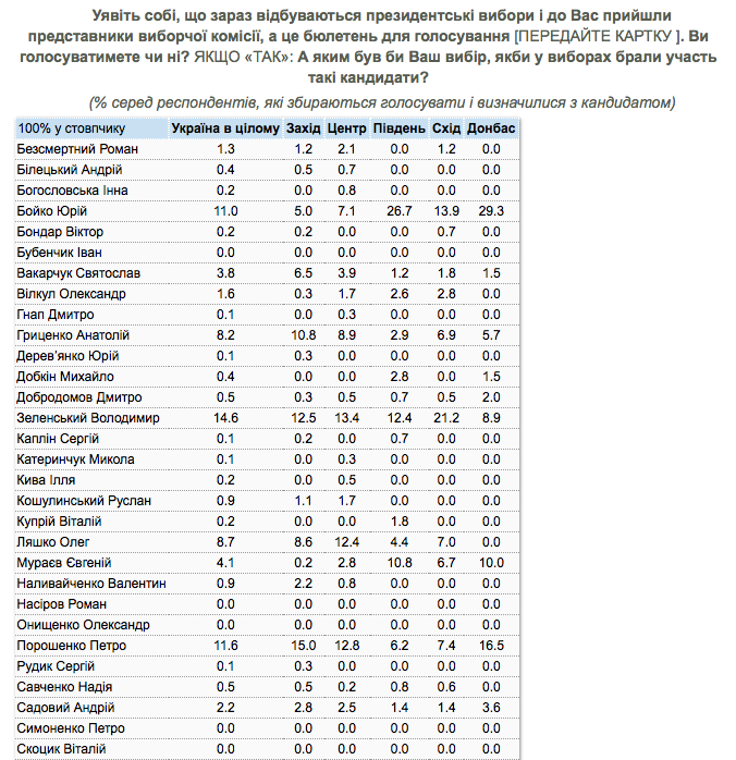 В таблице №1 - предпочтения всех респондентов. В таблице №2 - тех украинцев, которые собираются голосовать и уже определились с выбором.