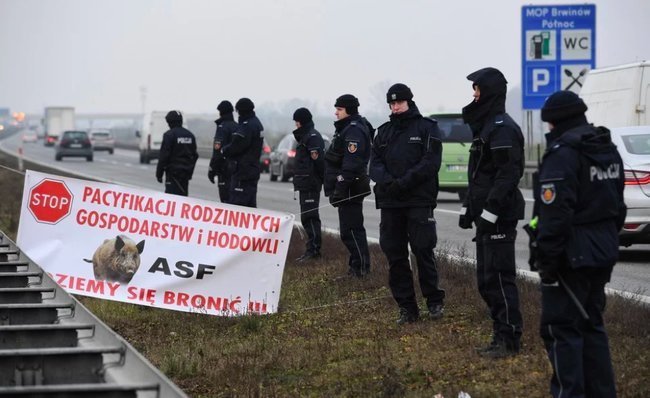 Протестующие перекрыли проезд по трассе А2 и потребовали эффективного решения аграрных проблем в стране, особенно тех, которые связаны с угрозой от африканской чумы свиней.