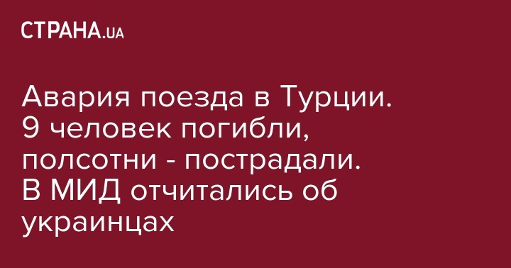 Авария поезда в Турции. 9 человек погибли, полсотни - пострадали. В МИД отчитались об украинцах
