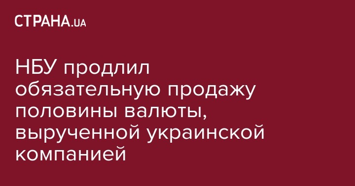 НБУ продлил обязательную продажу половины валюты, вырученной украинской компанией