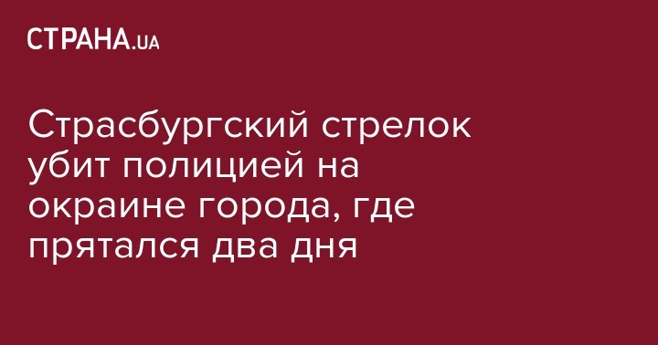 Предполагаемый убийца убит через два дня после теракта в эльзасском мегаполисе, примерно в двух километрах от места совершения преступления, в тихом районе, расположенном по направлению к немецкой границе, если ехать из центра Страсбурга.