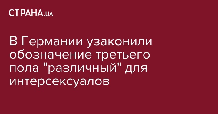 Ранее "Страна" писала о том, что в Германии законодательно появился третий пол при рождении ребенка. Интерсексуалов в стране уже 80 тысяч.