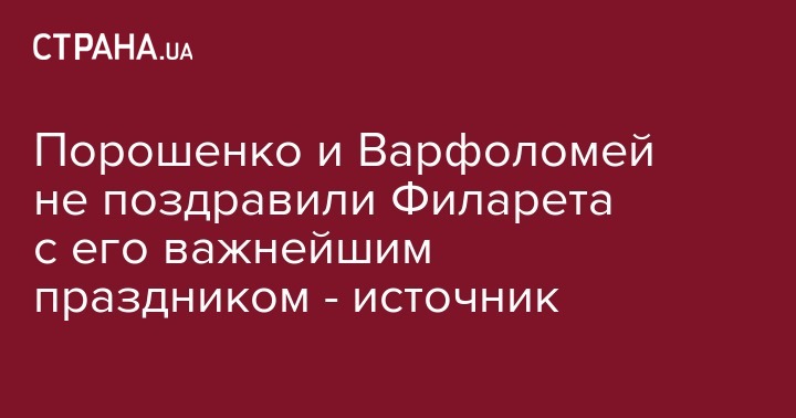 Порошенко и Варфоломей не поздравили Филарета с его важнейшим праздником - источник