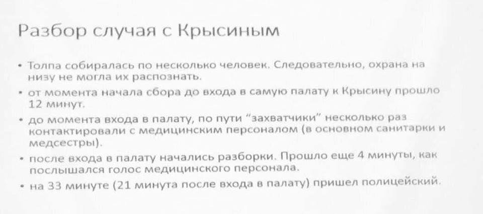 Как написал в Facebook, лидер С14 Евгений Карась, на следующей неделе перевыборы главы Института. И руководство, опасаясь прихода радикалов, инструктировало врачей, как реагировать на вторжение.