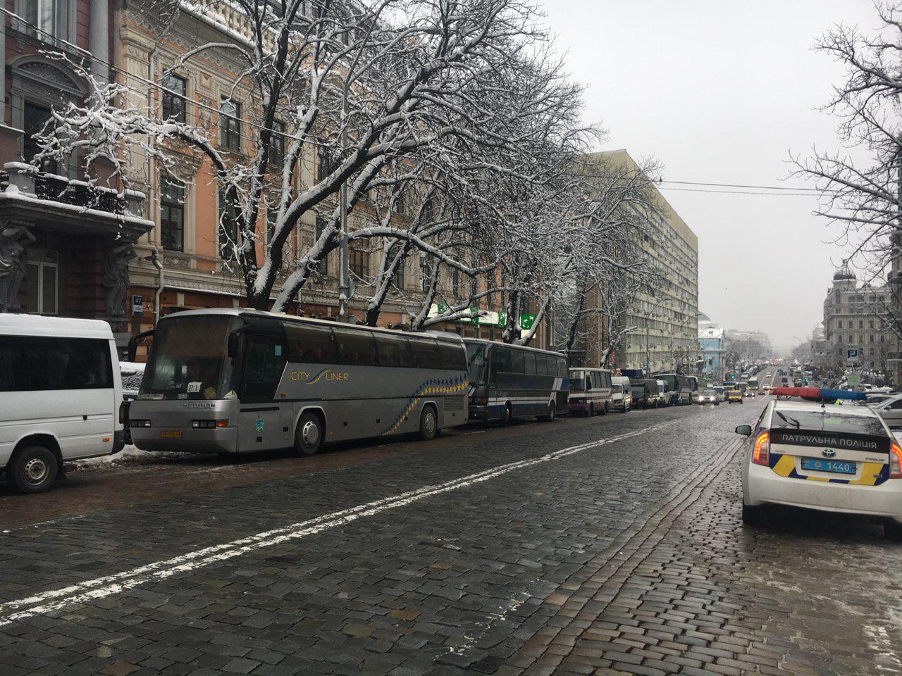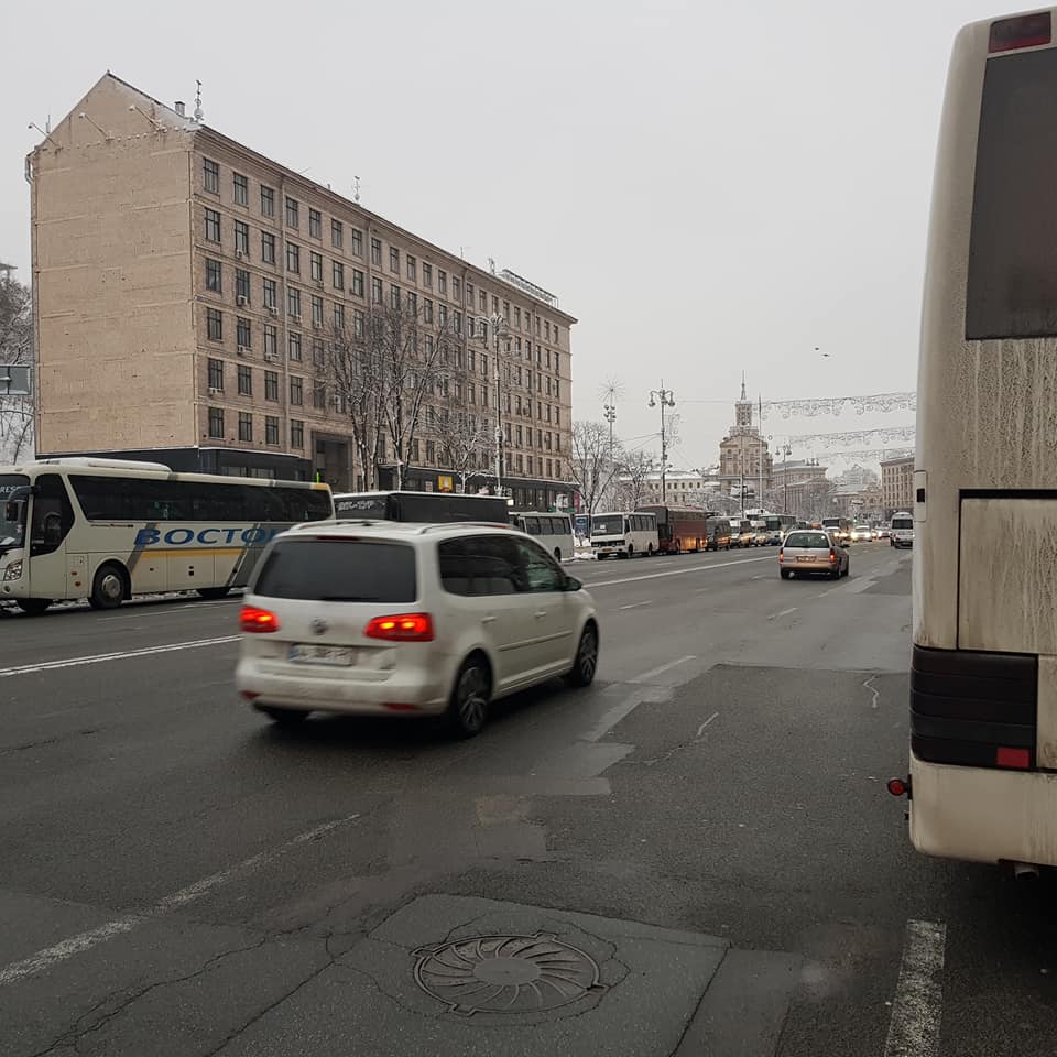 8:49  На Крещатике уже много автобусов, пишут в Facebook киевляне.