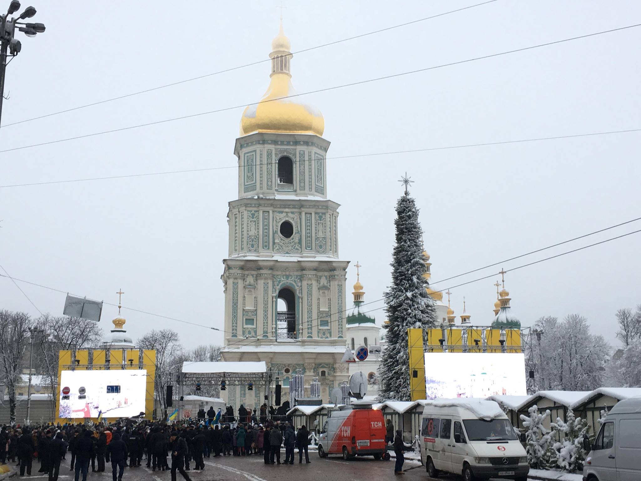 9:51  Перед Софиевском собором установлен экран, где транслируют пояснительный фильм, как Украина шла к поместной церкви. Кстати, сам собор должен начинаться - он назначен на 10 часов утра.