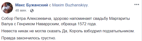 Правда закончилось грустно", - пишет блогер Макс Бужанский, имея в виду разразившуюся сразу после этой свадьбы Варфоломеевскую ночь - резню, которую французские католики устроили против гугенотов.
