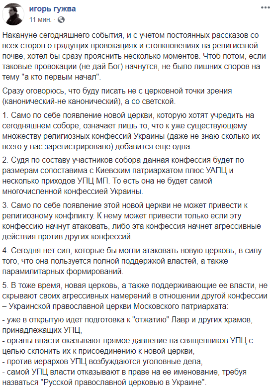 "Накануне сегодняшнего события, и с учетом постоянных рассказов со всех сторон о грядущих провокациях и столкновениях на религиозной почве, хотел бы сразу прояснить несколько моментов. Чтоб потом, если таковые провокации (не дай Бог) начнутся, не было лишних споров на тему "а кто первым начал".