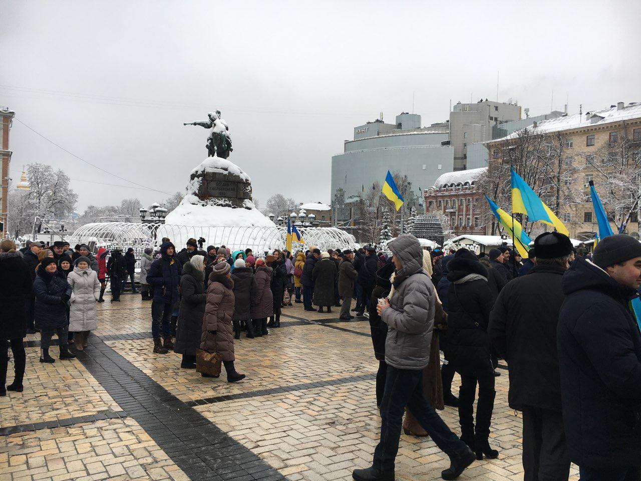 9:34  На площади перед Софией Киевской много бюджетников - в частности учителей. Журналисты, которые ведут онлайн-трансляции, опрашивают людей и часто встречают работников сферы образования.