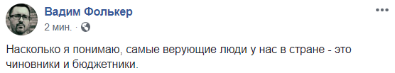 10:20  "Насколько я понимаю, самые верующие люди у нас в стране - это чиновники и бюджетники", - комментирует происходящее в центре Киева журналист Вадим Фолькер.