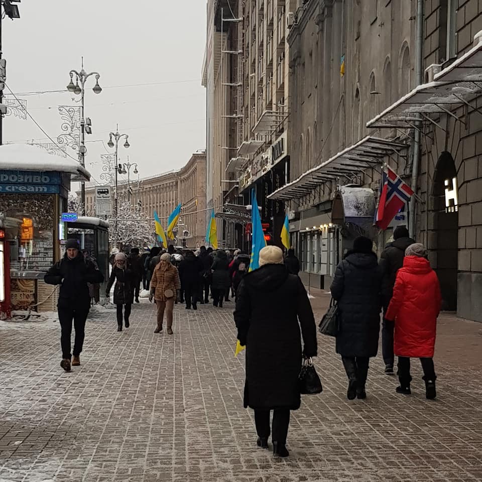 Скубченко отметил, что людей на Крещатике собирают в организованные группы и ведут колоннами.