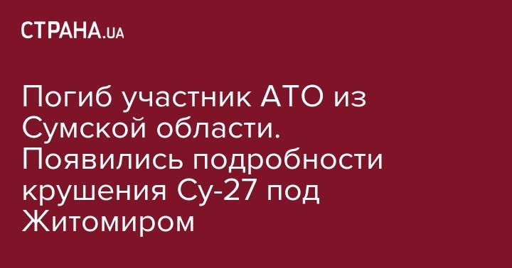 Погиб участник АТО из Сумской области. Появились подробности крушения Су-27 под Житомиром