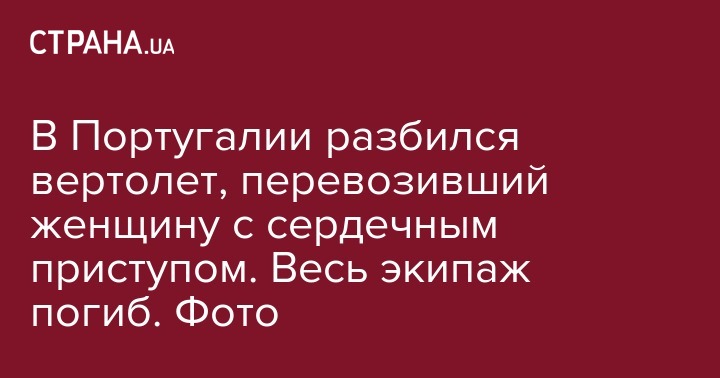 В Португалии разбился вертолет, перевозивший женщину с сердечным приступом. Весь экипаж погиб. Фото