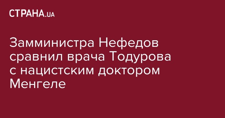 Первый заместитель министра экономического развития и торговли Украины Максим Нефедов обозвал главу Института сердца Бориса Тодурова нацистским доктором Менгеле. Об этом в Facebook сообщила журналист Наталья Влащенко.